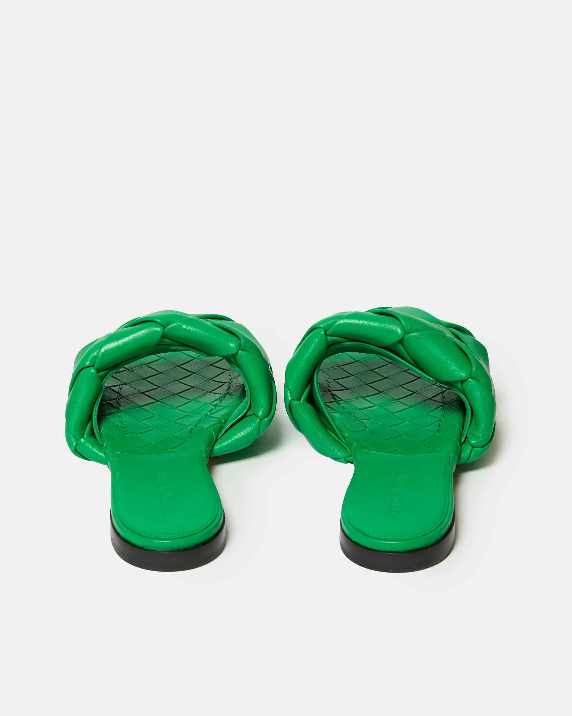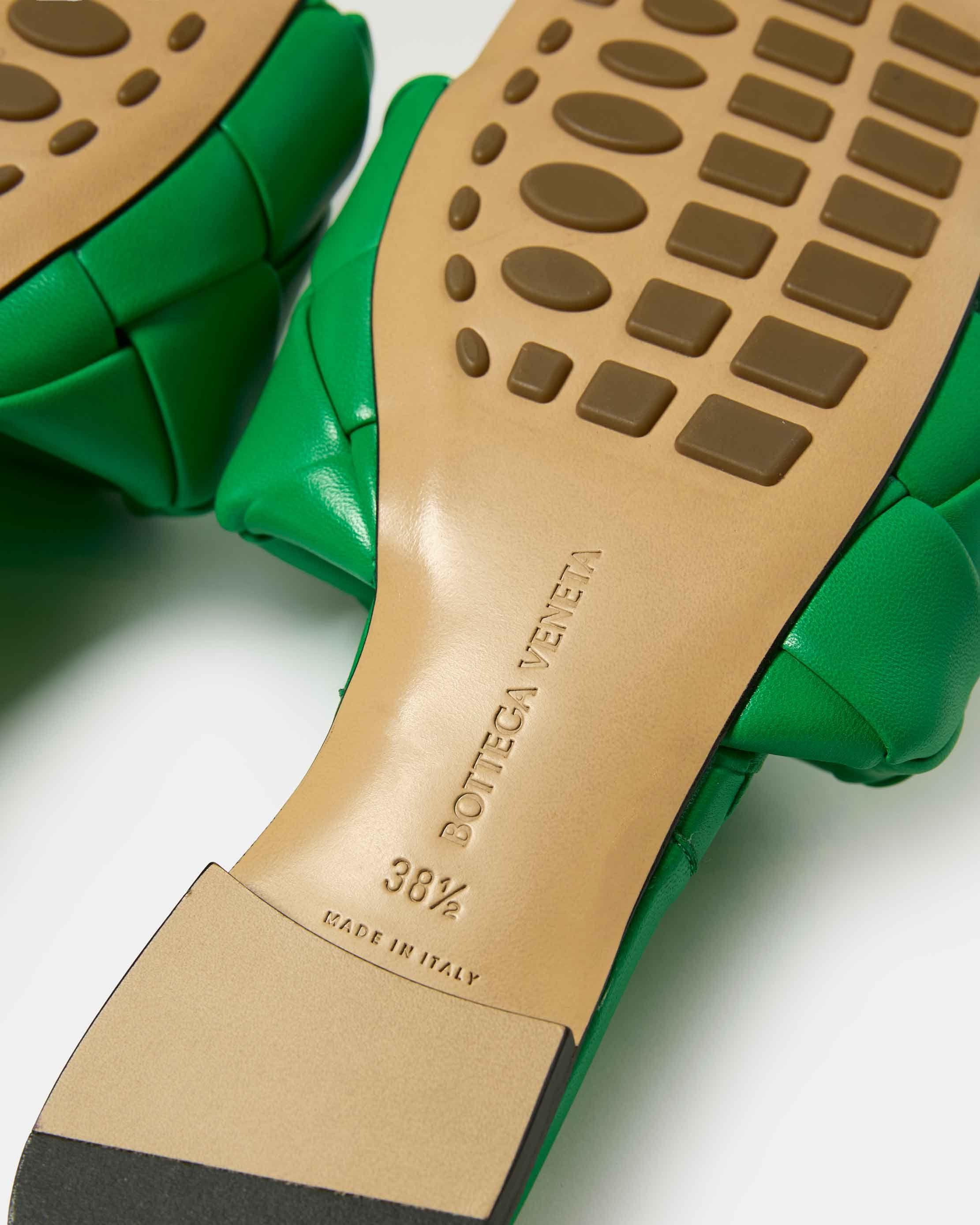 Crafted in vibrant green nappa leather, these slides feature the signature padded Intrecciato upper, a squared toe and a leather sole. A statement piece that perfectly balances luxury, craftsmanship and contemporary design.